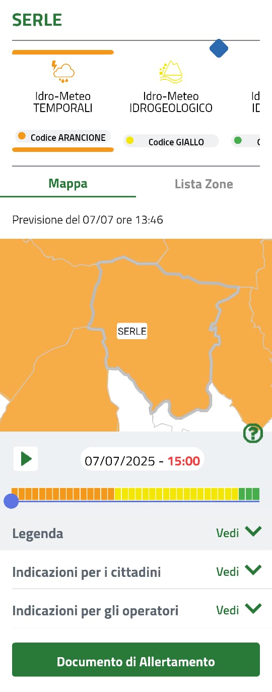 allertaLOM Previsione per SERLE del 07/07/2025 per il rischio Idro-Meteo - Temporali https://www.allertalom.regione.lombardia.it/allertalom#/main/bookmarks/detail/03017178
